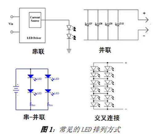 當然,用戶也可以采用並聯、串聯-並聯組合及交叉連接等其它排列方式,用於需要“相互匹配的”LED 正向電壓的應用,並獲得其它優勢。如在交叉連接中,如果其中某個LED 因故障開路,電路中僅有1 個LED 的驅動電流會加倍,從而盡量減少對整個電路的影響。