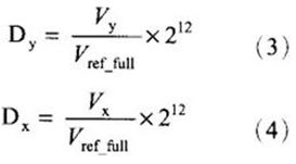 ADS7846內部可以通過寄存器的設置A/D轉換器的分辨率設為8位或12位,在本係統中A/D轉換器的分辨率取12位。則P點的二進製輸出代碼為: