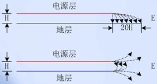 2.電源平麵應相對於其相鄰地平麵內縮(建議值5H~20H)。電源平麵相對於其回流地平麵內縮可以有效抑製“邊緣輻射”問題,如圖2所示。