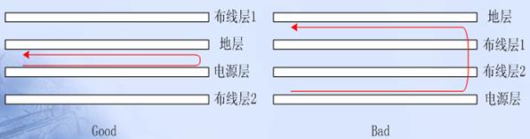 時鍾頻率超過5MHz,或信號上升時間小於5ns時,為了使信號回路麵積能夠得到很好的控製,一般需要使用多層板設計。在設計多層板時應注意如下幾點原則: