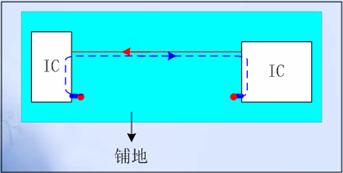 圖5 雙層板的關鍵信號線地投影平麵上大麵積鋪地