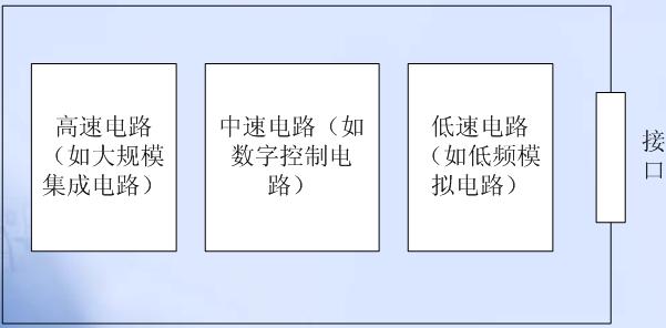 2.多種模塊電路在同一PCB上放置時,數字電路與模擬電路、高速與低速電路應分開布局,以避免數字電路、模擬電路、高速電路以及低速電路之間的互相幹擾。另外,當線路板上同時存在高、中、低速電路時,為了避免高頻電路噪聲通過接口向外輻射,應該遵從圖7中的布局原則。