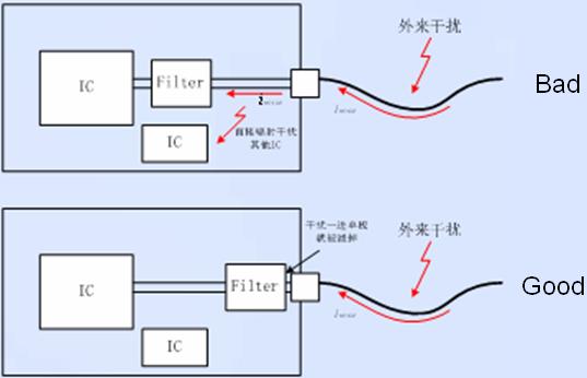 7.濾波器件需並排放置,以防止濾波後的電路被再次幹擾。