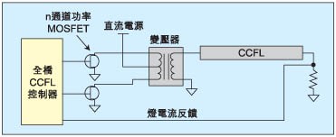 推挽驅動器有很多好處:這種架構隻用到n通道MOSFET(圖4),這有利於降低成本和增加轉換器效率;它很容易適應較高的轉換器直流電源電壓;采用更高的轉換器直流電源電壓時,隻需選擇具有合適的漏-源擊穿電壓的MOSFET即可。不管轉換器的直流電源電壓如何,都可采用同樣的CCFL控製器。但采用n通道MOSFET的全橋和半橋架構就無法做到這一點。