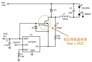 圖4 CAT4201高壓LED驅動器配置