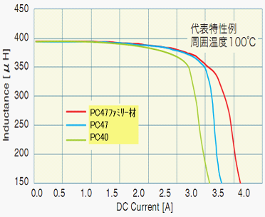 - PC47材質的飽和電流大於普通材質PC40