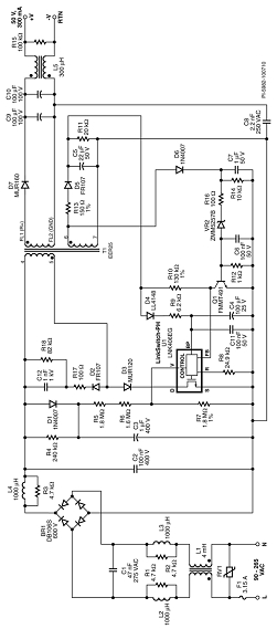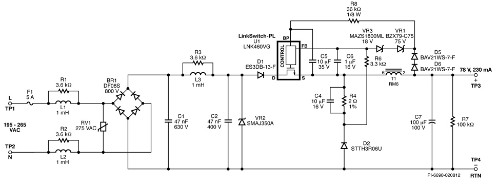 注意:本設計利用DER-305 PCB板製作,最大限度地利用了LNK460VG器件散熱器的麵積。