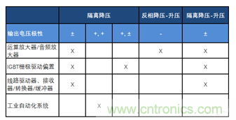 正如以上討論的,根據不同的輸入電壓軌,設計工程師可以選擇不同的拓撲,來提供適用於各種應用的電源軌。表1總結了適合不同應用的拓撲。