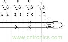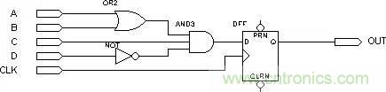 下麵我們以一個簡單的電路為例,具體說明PLD是如何利用以上結構實現邏輯的,電路如下圖: