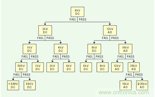 根據AEC-Q200-002,HBM的ESD測試流程如圖3所示,級分類如表1所示。根據圖3的流程進行測試,耐電壓的分級如表1所示進行分類。