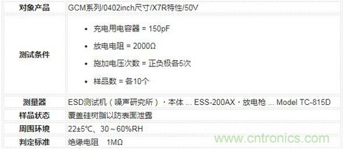 展示了多層陶瓷電容器(GCM係列)的ESD耐性參考數據。
