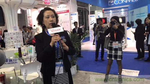 本次展會上,科瑞康醫療總經理王佳介紹了科瑞康醫療強勢推出的“智慧醫療、共享健康”整體解決方案及監護儀新品,還有針對女性的盆底康複治療係統。王經理從容詳細的講解,引來眾多觀眾圍觀。