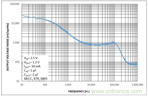 c)半(ban)導(dao)體(ti)結(jie)構(gou)自(zi)身(shen)會(hui)產(chan)生(sheng)固(gu)有(you)的(de)噪(zao)聲(sheng),主(zhu)要(yao)是(shi)由(you)自(zi)由(you)原(yuan)子(zi)與(yu)基(ji)礎(chu)材(cai)料(liao)晶(jing)體(ti)結(jie)構(gou)碰(peng)撞(zhuang)而(er)引(yin)起(qi)。由(you)於(yu)固(gu)有(you)噪(zao)聲(sheng)是(shi)一(yi)種(zhong)半(ban)導(dao)體(ti)中(zhong)與(yu)電(dian)流(liu)傳(chuan)導(dao)原(yuan)理(li)相(xiang)關(guan)的(de)物(wu)理(li)現(xian)象(xiang),因(yin)此(ci)可(ke)以(yi)通(tong)過(guo)一(yi)些(xie)技(ji)術(shu)來(lai)抑(yi)製(zhi),但(dan)是(shi)不(bu)可(ke)能(neng)將(jiang)其(qi)徹(che)底(di)去(qu)除(chu)。現(xian)代(dai)LDO的輸出噪聲可以達到數以百計的微伏(uV)甚至更小,但是頂級LDO產生的噪聲就會達到微伏(uV)單位。