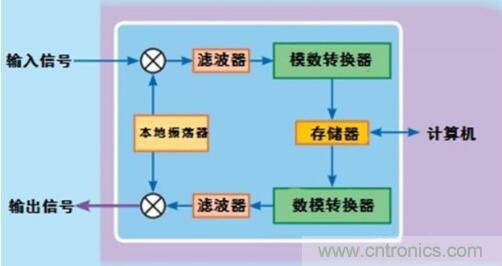 數字射頻存儲器可以將接收信號數字化,數字化信號傳輸到計算機,計算機對它進行修正,連續生成新的轉發修正信號。