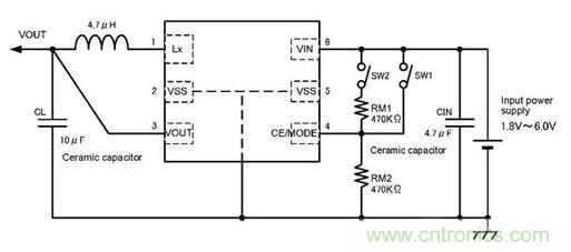 XC9237型在PWM/PFM自動轉換基礎上,又增加了用外部信號強製過渡到固定在PWM工作的功能。對應於使用機器的工作狀態,能使其工作在紋波更低的PWM工作狀態,能隨時控製降低噪聲(參照圖6)