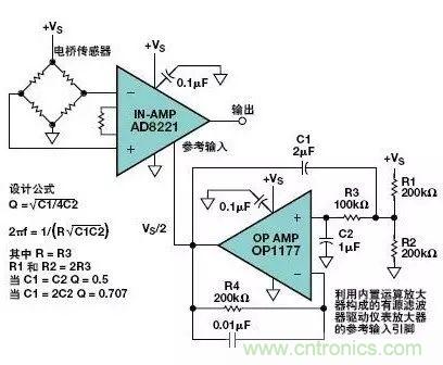 圖11.將運算放大器緩衝器接成有源濾波器驅動儀表放大器的參考輸入引腳