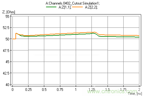 圖5圖6對比,發現未處理之前阻抗的跳躍很明顯,隔層處理後的阻抗改善很多,幾乎沒有任何階躍與不連續。