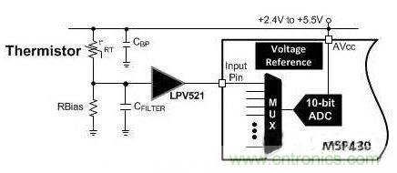 從技術上講,熱敏電阻是一種電阻器,它的電阻值隨溫度的變化而變化。如圖1中zhong所suo示shi,需xu要yao一yi個ge偏pian置zhi電dian路lu和he少shao數shu幾ji個ge外wai部bu組zu件jian,在zai這zhe裏li,偏pian置zhi電dian阻zu器qi和he熱re敏min電dian阻zu組zu成cheng了le一yi個ge分fen壓ya器qi,並bing且qie被bei接jie到dao一yi個ge可ke選xuan運yun算suan放fang大da器qi上shang,這zhe個ge運yun算suan放fang大da器qi與yu微wei控kong製zhi器qi (MCU) 的模數轉換器 (ADC) 相連,從而將熱敏電阻的電阻值轉換為一個溫度值。