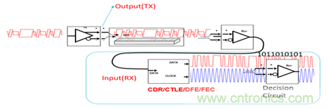 【導讀】在用戶進行係統或者芯片測試的時候,一般主要驗證幾個方麵的性能和可靠性,包括係統發送端的信號質量,鏈路的損耗/串擾,接收端的容限。如下圖1,一個鏈路係統的基本架構。通常在發送端會使用FFE來補償鏈路的損耗,接收端會采用DFE/FFE等方法來進行均衡,一些比較高速率的標準如PCIE 4.0/5.0,SAS4等還會采用FEC來進行糾錯,當然接收端還需要CDR來從串行信號裏麵進行時鍾恢複得到同步時鍾來對信號進行采樣。