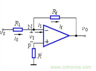 在反相放大電路中,信號電壓通過電阻R1加至運放的反相輸入端,輸出電壓Vo通過反饋電阻Rf反饋到運放的反相輸入端,構成電壓並聯負反饋放大電路。