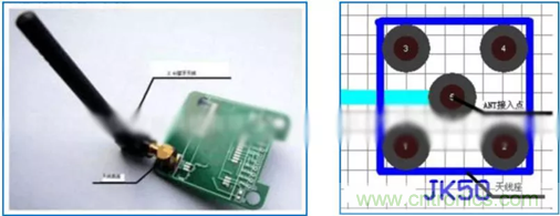 2.4G棒狀藍牙天線體積大,但傳輸距離要強於其他天線。在PCB設計時,天線周圍也和上述的三種天線設計一樣要淨空。如下圖: