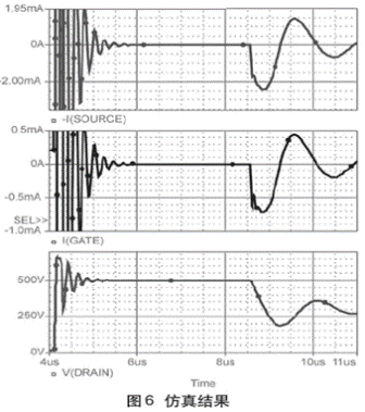 作為典型實例,諧振頻率在500kHz的範圍內,從漏極平台到穀點的電壓變化為100V。根據式3,一般柵極電流峰-峰值幅度的大小是10mA。負值部分的範圍是5mA。