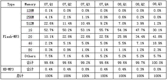 - 閃存型MP3播放機占據絕對主力,硬盤型退出市場