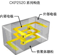 - CKP2520係列是在薄膜上印刷內部電極,通過通孔實現層間的連接,使內部電極在螺旋上形成的