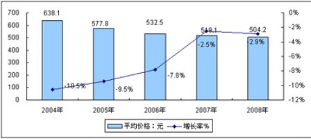 2008年,中國DVD播放機市場中的主導產品仍然是500元以下的較低端產品,中低端市場份額繼續保持其主力地位,台式DVD機市場穩步衰退,價格下降空間有限,沒有較大波動,而移動DVD播放機、刻錄DVD播放機等高端產品的價格下降較快。