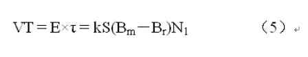 就是變壓器的伏秒容量,即:伏秒容量等於輸入脈衝電壓幅度與脈衝寬度的乘積,這裏我們把伏秒容量用VT來表示。伏秒容量VT表示:一個變壓器能夠承受多高的輸入電壓和多長時間的衝擊。