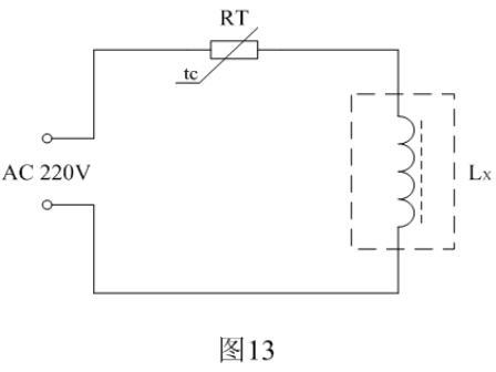 高壓包退磁的方法是用一個20~40歐姆的消磁熱敏電阻(可用兩個消磁熱敏電阻串聯)與高壓包初級線圈串聯,然後接到110~220V/50Hz交流電源上,大約需要20多秒鍾,待消磁熱敏電阻完全加熱後,即可達到退磁的目的,如圖13所示。圖13中RT為熱敏電阻,Lx為高壓包初級線圈。一般消磁電流需要達到極限電流Imax的3~5倍。