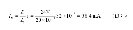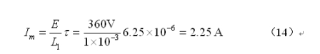 根據圖8和圖9,正常工作時,流過高壓包初級線圈的最大電流Im不應該超過極限電流值Imax的70%,由此,可以求得流過高壓包初級線圈的極限電流Imax為1.49 A 。
