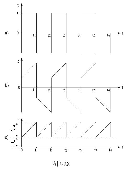 圖2-27中,U是電源電壓,N為變壓器初級線圈,控製開關K1、K2、K3、K4組成橋式開關控製電路,K1和K4為一組,K2和K3為一組,兩組開關輪流接通與斷開,把電源電壓正反向加於變壓器初級線圈兩端;R為取樣電阻,通過測量R兩端的電壓,就可以知道流過變壓器初級線圈的電流;取樣電壓被送到示波器Dp進行顯示。