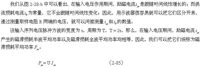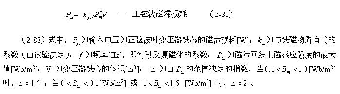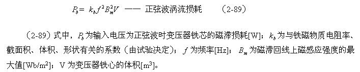 這裏順便指出,利用(2-88)和(2-89)式來分別測試變壓器鐵心的磁滯損耗和渦流損耗是非常困難的;一(yi)個(ge)是(shi)它(ta)們(men)的(de)係(xi)數(shu)很(hen)難(nan)決(jue)定(ding),另(ling)一(yi)個(ge)是(shi)兩(liang)者(zhe)很(hen)難(nan)分(fen)別(bie)進(jin)行(xing)測(ce)量(liang),或(huo)從(cong)測(ce)量(liang)結(jie)果(guo)中(zhong)進(jin)行(xing)分(fen)離(li)。對(dui)比(bi)兩(liang)式(shi)的(de)參(can)數(shu)就(jiu)可(ke)以(yi)知(zhi)道(dao),它(ta)們(men)之(zhi)間(jian)最(zui)大(da)的(de)區(qu)別(bie)是(shi)頻(pin)率(lv)對(dui)損(sun)耗(hao)的(de)影(ying)響(xiang)程(cheng)度(du);一個是與頻率成正比,另一個是與頻率的平方成正比。
