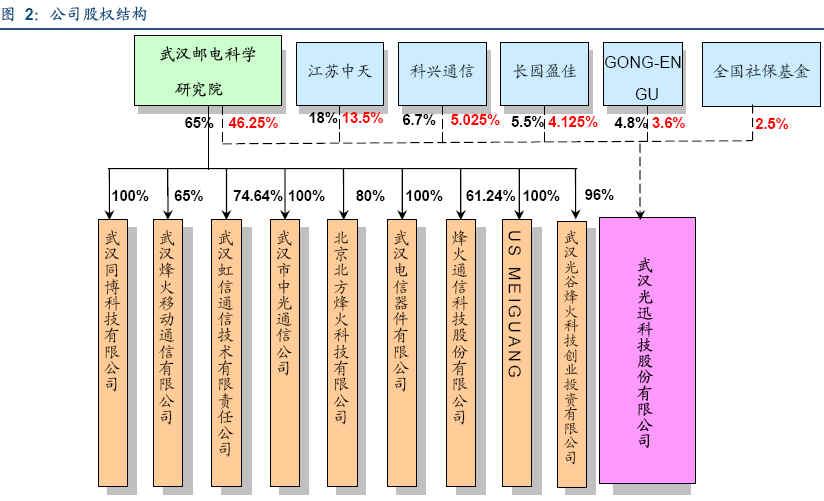 事件評論光迅科技基本情況光迅科技主要從事通信領域內光電子器件的研究、開發、製zhi造zao和he技ji術shu服fu務wu,光guang電dian子zi器qi件jian是shi光guang傳chuan輸shu設she備bei的de基ji礎chu元yuan器qi件jian,為wei光guang通tong信xin係xi統tong最zui重zhong要yao的de組zu成cheng部bu分fen。公gong司si是shi國guo家jia高gao技ji術shu研yan究jiu發fa展zhan計ji劃hua成cheng果guo產chan業ye基ji地di(區域類)--武漢光通信與光傳感材料及器件成果產業化基地的主要建設單位之一,並被國家科學技術部火炬高技術產業開發中心認定為"國家火炬計劃重點高新技術企業"。