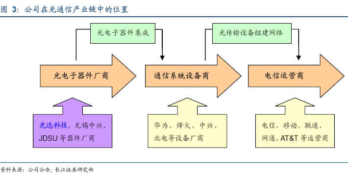 全球光通信行業長期向好--公司增長的基礎如圖3所示,光迅科技處於光通信產業鏈的上遊位置,故公司的增長前景,取決於光通信行業的未來趨勢。