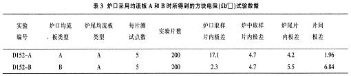 從表4可看出,廢氣排放口離恒溫區越遠,即離爐口越近,爐口的方阻片內/片間均勻性改善越好,但廢氣排放的同時也有大量熱能的排放,在排放口區域聚集的熱能較多,因考慮到爐門的低溫(一般為小於200℃)要求,在一定程度上又限製了排放口到爐門的距離不能太近。所以,生產中廢氣排放口的較佳位置是在一個兩向平衡距離範圍內。