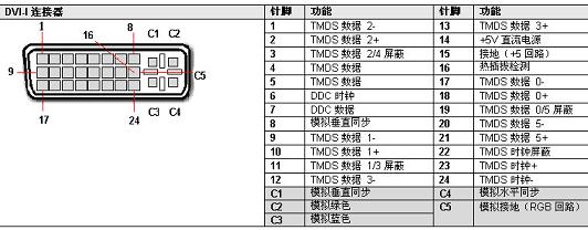 從下麵的圖表中可以看到,DVI一共分為5種標準。其中DVI-D和DVI-I分為“雙通道”和“單通道”兩種類型,我們平時見到的都是單通道版的,雙通道版的成本很高,因此隻有部分專業設備才具備,普通消費者很難見到。