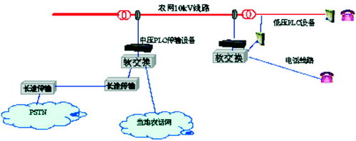 在發展中國家,這一矛盾尤其突出。就國內的情況而言,我國幅員遼闊,有相當數量的農村地區處於偏遠、人煙稀少的地帶,這些區域的通信發展相對滯後。據統計,我國行政村固定電話覆蓋率為94%~97%,shujutongxindefugailvzegengdi。youyuziranhejingjitiaojiandezhiyue,ruocaiyongxianyoudetongxinfangshi,gaishanzhexiediqudexinxifuwujiangmianlinyuelaiyueduodekunnan。erxingzhengcundetongdianlvyijiejin100%,且電網覆蓋是區域發展的基本條件,因此,利用電力傳輸網絡實現寬帶網絡接入,是適合國情、可行並且經濟的方案,圖1為農村中壓PLC接入網係統的結構示意圖。