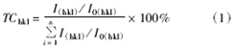 在XRD測量中,以晶麵(hkl)的織構係數TC(texturecoefficient)來表征晶麵擇優程度。