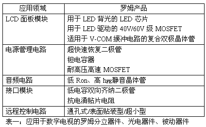 除了半導體IC,羅姆公司的分立和被動元件產品,也可以在數字電視的LCD麵板模塊、電源管理電路、音頻電路、接口模塊、遠程控製電路等領域有廣泛的應用。