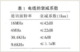 導線的電阻對信號的影響很小,可以忽略不計。電纜的分布電容C主要是由雙絞線的兩條平行導線產生。信號的損失主要是由於電纜的分布電容和分布電感組成的LC低通濾波器。通訊波特率越高,信號衰減也會越大。常規電纜的衰減係數見表1.