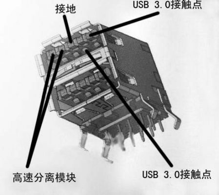 與USB 1.1升級到USB 2.0一樣,USB 3.0仍然采用USB 2.0相同的架構,向下兼容先前的即插即用USB版本,不管是USB 2.0還是USB 1.1設備,都能夠與USB 3.0接口的設備相兼容。從接口結構來看,USB 2.0線纜使用了4條線的封裝設計,所以USB 2.0接口使用了4個金屬觸點,它們分別為+5V取電、數據-、數據+、GND接地。然而USB 3.0並非廣播總線,它在包頭中采用發送列表區段來進行發包,上行接口提供分散式的USB 3.0互聯,下行接口支持USB 2.0設備,從而用簡單的方法實現高速傳輸和兼容性並舉的雙重好處。
