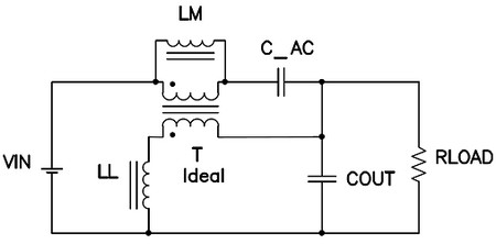 由於這種拓撲與反向拓撲類似,因此許多人會認為要求有一套緊密耦合的繞組。然而,情況卻並非如此。圖2 顯示了連續SEPIC 的兩個工作狀態,其變壓器已通過漏電感(LL)、磁化電感(LM) 和一個理想變壓器(T) 建模。經檢查,漏電感的電壓等於C_AC 的電壓。因此,較小值C_AC 或者較小漏電感的大AC 電壓會形成較大的回路電流。較大的回路電流會降低轉換器的效率和EMI 性能,而這種情況是我們所不希望出現的。減少這種大回路電流的一種方法是增加耦合電容(C_AC)。但是,這樣做是以成本、尺寸和可靠性為代價的。一種更為精明的方法是增加漏電感,其在指定某個定製磁性組件的情況下可以很輕鬆地實現。