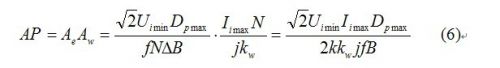 因為導通時間隨輸入電壓平方成反比,因此應當在最低電壓下選擇磁芯尺寸,隻要在最低輸入電壓峰值時避免飽和。