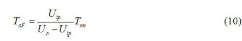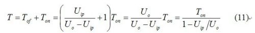 可見,輸出電壓Uo一定大於輸入電壓Uip,如果輸出電壓接近輸入電壓,在輸入電壓峰值附近截止時間遠大於導通時間,開關周期很長,即頻率很低。