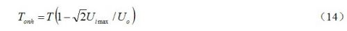 例如,假定導通時間為10μs,1.414Uimin/ Uo=0.65,如果輸入電壓在±20%範圍變化,最低輸入電壓為220×0.8,輸出電壓為Uo =1.414×220×0.8/0.65=383V。周期為10/0.35=28.57μs,頻率為35kHz。在15°時,周期為12μs,相當於開關頻率為83kHz。在最高輸入電壓時,由式(12)得到最高電壓導通時間Tonh=(0.8/1.2)2×TonL=4.444μs,在峰值時的開關周期為T=Tonh/(1-1.414×1.2×220/383)=176μs,相當於開關頻率為5.66kHz。
