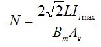 其中:N-電感線圈匝數;Ae-磁芯有效截麵積;Bm《Bs(100)-最大磁通密度,為減少損耗,選擇飽和磁感應的70%。