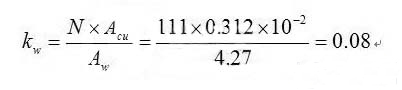 選擇d=0.63mm,d’=0.70mm,截麵積Acu=0.312mm2。