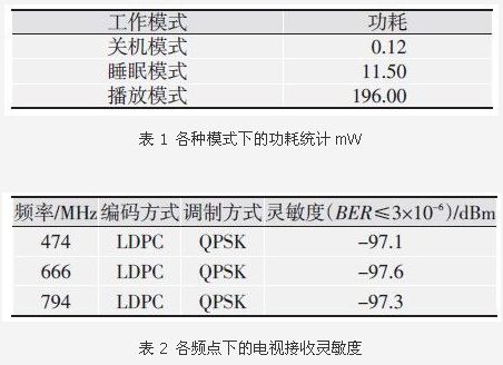 從測試結果可知,功耗結果滿足智能手機實際使用要求,在UHF的整個頻段,CMMB電視接收模塊的靈敏度都要優於規範要求的-95 dBm.